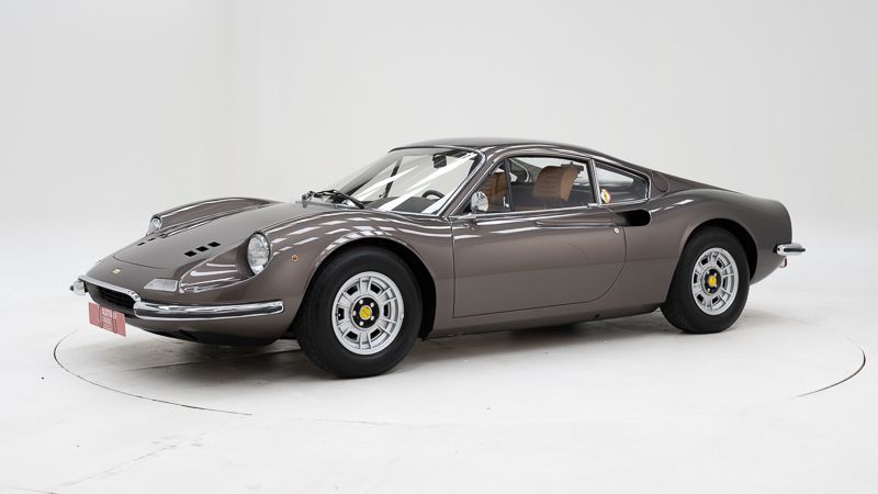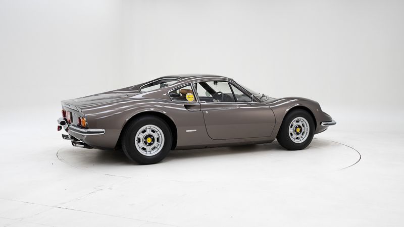 Het tijdloze koetswerk van Pininfarina wordt algemeen beschouwd als één van de mooiste sportwagenontwerpen aller tijden. De vloeiende lijnen, compacte proporties en perfecte visuele spanning maken de Dino 246 GT tot een designicoon dat losstaat van trends of tijdperken. In deze specifieke uitvoering wordt dat karakter nog versterkt door de uiterst zeldzame Marrone Dino Metallizzato-kleur, waarvan slechts een zeer beperkt aantal exemplaren werd geproduceerd.
